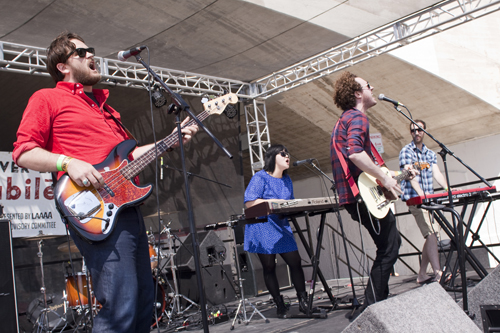 If the vendors set up between Sunset Avenue and Santa Monica Boulevard weren’t a sign, Silver Lake Jubilee’s return rang loud and clear when local bands started playing their tunes under the bridge. The annual two-day music and arts festival, a benefit for the Los Angeles Arts and Athletics Alliance, once again offered a friendly invitation to a good deal of fun for only $5. Although Myra Avenue was less of a food truck haven compared to the Jubilee’s inaugural year, there was still plenty to peruse through whether you were on your way to see a band, silence that growl in your stomach or pick up some new threads as you listened to some comedy.