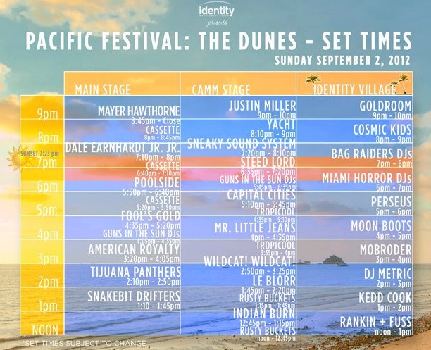 The Pacific Festival – the one-day gathering of rock, pop and electro artists now staging at its third venue in as many years – has announced set times for Sunday. Mayer Hawthorne headlines the event at Newport Dunes Waterfront Resort & Marina (1131 Back Bay Drive in Newport Beach), but the festival figures to draw plenty of electro fans for the likes of Poolside, Capital Cities, Goldroom, YACHT and American Royalty. Solid indie-rock fare such as Fool’s Gold, Dale Earnhardt Jr. Jr and Tijuana Panthers accents the bill. Tickets ($55 general admission, $125 VIP) are available here.