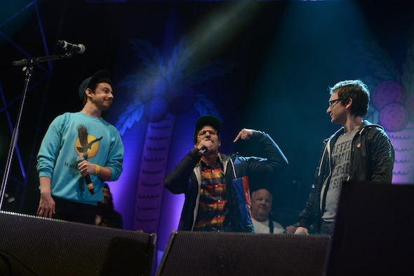 As advertised, the inaugural Festival Supreme on Saturday at the Santa Monica Pier had the feeling of a rock ’n’ roll festival, only for comedy. Billy Idol and the Lonely Island were surprise guests, padding a lineup that featured Adam Sandler, Eric Idle, Zach Galifianakis, “Mr. Show” and its cast, Conan O’Brien, Reggie Watts and Fred Armisen, among many others. The festival was curated by Kyle Gass and Jack Black of Tenacious D [top photo].