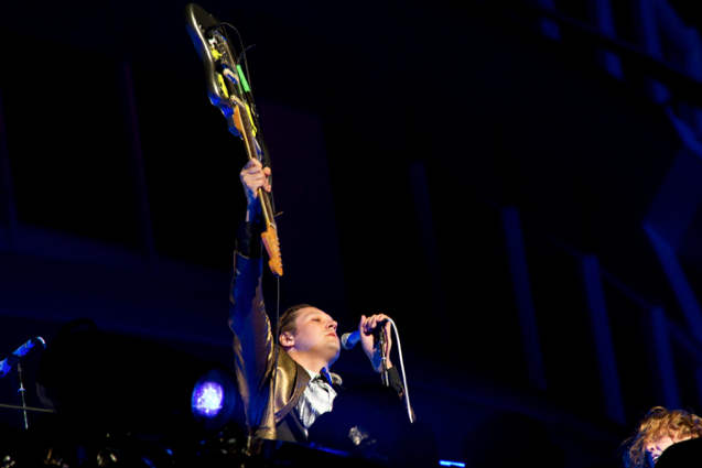 The shine was clearly still on for everybody who craned their necks in Hollywood on Tuesday. Arcade Fire played for over an hour, starting with the new album’s title track, dedicating “Afterlife” to the late Lou Reed (and later working in some of “Satellite of Love” with its own “Supersymmetry”) and finishing with oldies “Sprawl II (Mountains Beyond Mountains)” and “Neighborhood #3 (Power Out).”