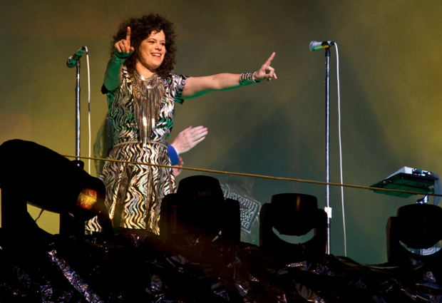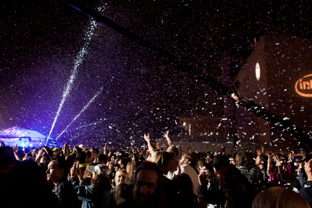The theme of the event was “Be a Reflektor,” with attendees winning passes via various social media gimmickry (although loads of gate-crashers made it in). Fans were asked to dress the part, and most did – shiny happy people adorned with baubles, trinkets, tsotchkes, tin foil and other accoutrements, all ready for the selfies they will remember years from now as “That Time I Dressed as a Prop for Arcade Fire.”