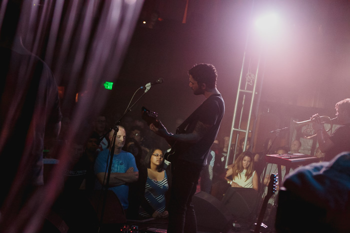 with “Doppelgänger,” which shimmered with dueling trumpets and a sprawling falsetto. Standouts “Hotel” and “Parade” highlighted the emotive and engaging textures the band is capable of, and drew big responses from the crowd.