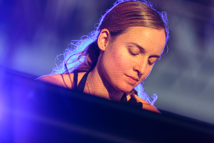 The New York duo of Josh Carter and Sarah Barthel brought Phantogram to the Fairbanks Lawn at Hollywood Forever Cemetery on Friday night for a show that was as striking visually as it was sonically. Doing material from their new album “Voices,” the duo performed amid real-time digital projections made by a Kinect and a GoPro. Oh, and there was a hula-hoop dancer from outer space. And Tobacco opened.
