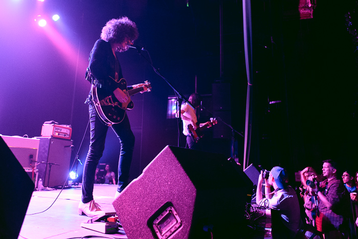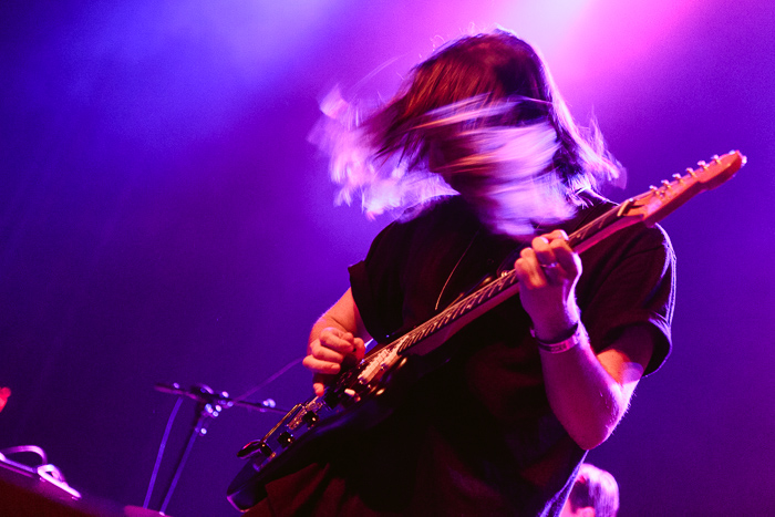 Bathed mostly in hazy magenta light, Temples gave an hour of measured bombast that would have made their advocates – old-guarders such as Noel Gallagher and Johnny Marr are among their proponents – proud. All the calling cards were there, some expanded for the occasion: “Sun Structures'” title track, “Keep in the Dark,” “Colours to Life,” “Mesmerize” and, of course, “Shelter Song,” perfect, as Bagshaw sings, for sharing “a drink or three.”