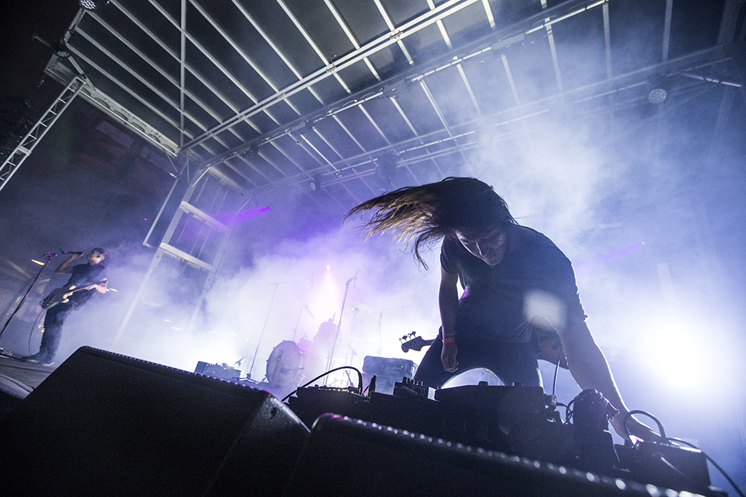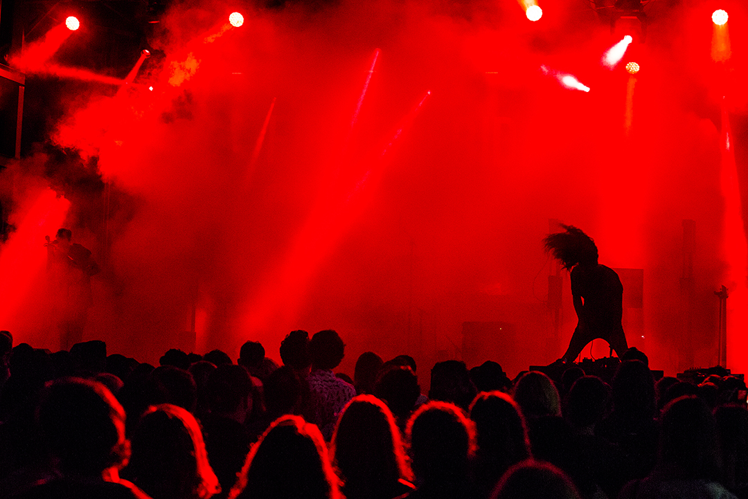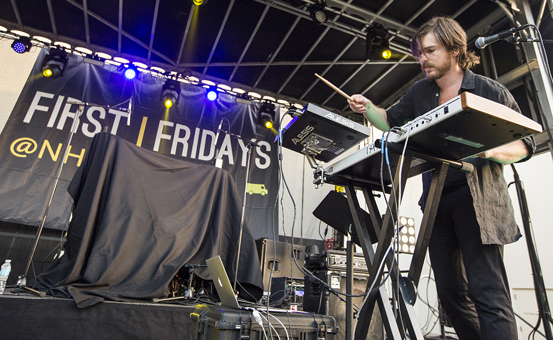 HEALTH played a set that rattled all the dinosaur bones Friday night at the Natural History Museum. The L.A. noise-rockers provided the big finish to 2016’s First Fridays series, performing on an outdoor stage in the museum’s Nature Gardens. They were preceded by YACHT, who played a set of bouncy disco and were rewarded with Muppets that somebody made them. Kauf opened the evening.