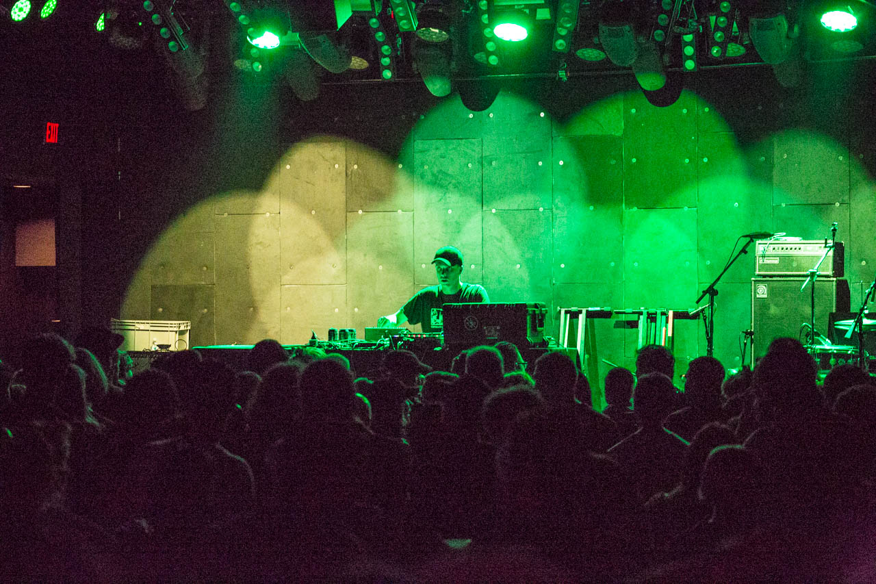 Iconoclastic British experimental band Psychic TV highlighted Friday’s opening night of Berserktown 3, the festival devoted to (in general) the sounds of the underground. Led by singer Genesis Breyer P-Orridge, who noted the band were “playing beautiful songs tonight,” Psychic TV performed their their 1982 debut “Force the Hand of Chance.” [Excellent background here.] The Teragram Ballroom was slow to fill until the headliners went on, but early arrivals witnessed eclectic performances from the likes of Denmark’s First Hate, Mueran Humanos (who earned an enthusiastic response from their all-in-Spanish set), Chicago’s Yoko and the Oh No’s and L.A.’s Sextile. The night’s closer, Russel Haswell, performed by crouching to manipulate sounds on a small electronic network, standing only to sip his drink.
