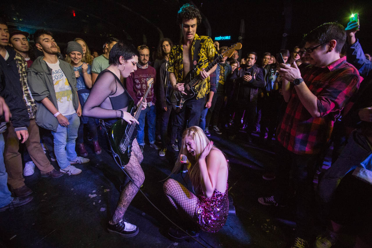The Aquadolls got the crowd involved too, joining the fray on the floor and addressing politics in introducing their song “Girl Riot.” Prism Tats opened the night with songs from their self-titled debut.