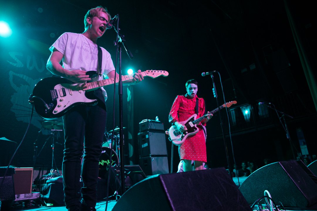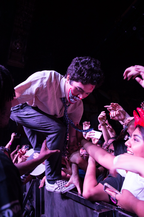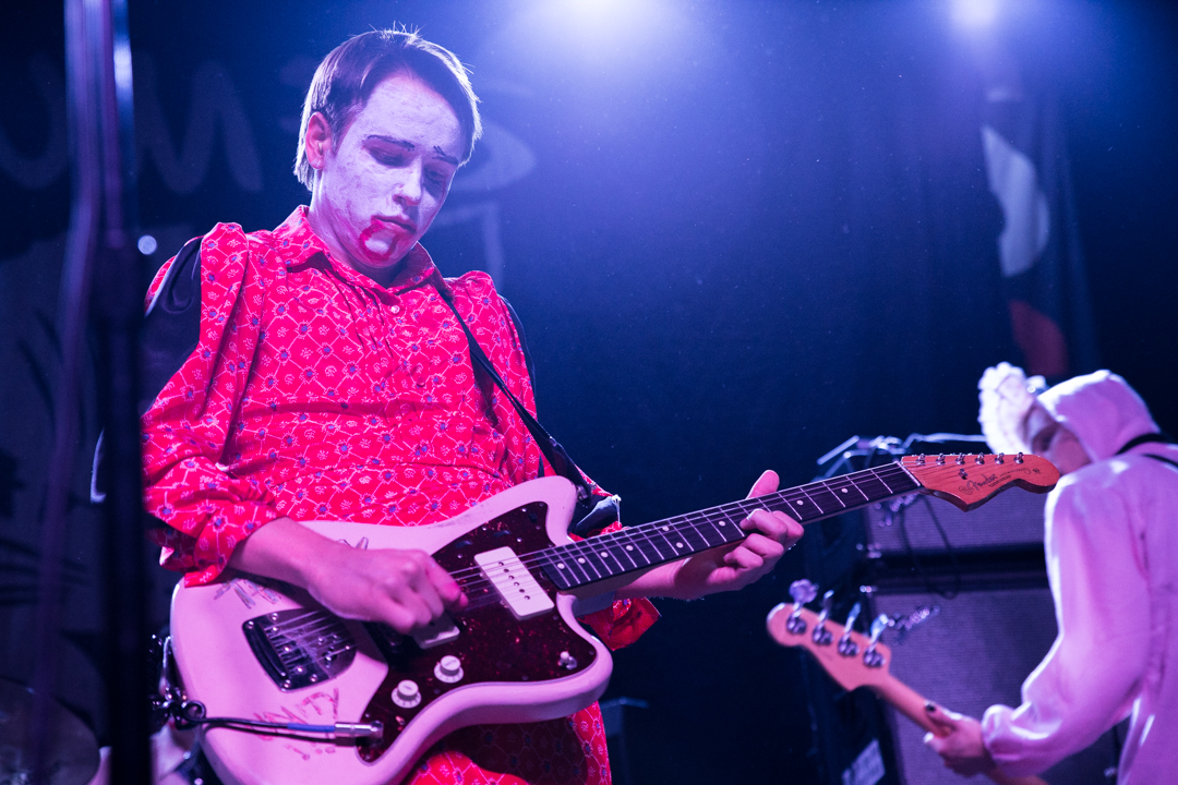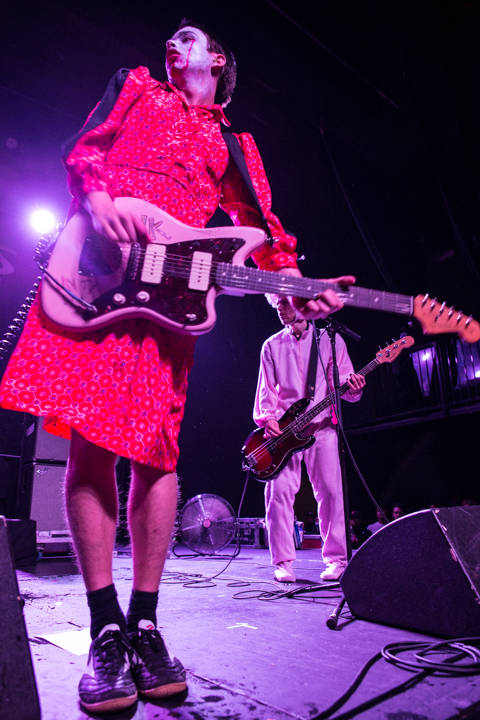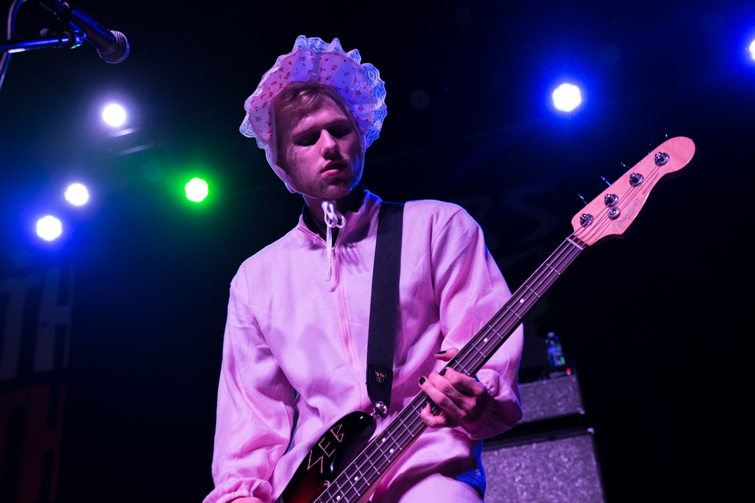 SWMRS, the young Bay Area pop-punk quartet whose album was produced by Zac Carper of FIDLAR, arrived dressed for Halloween, playing their exuberant pop-punk tunes to an equally young and exuberant crowd. The audience dutifully followed singer Cole Becker’s instructions to form a mosh pit, and then enthusiastically welcomed drummer Joey Armstrong when he came to the front for a meet-and-greet.