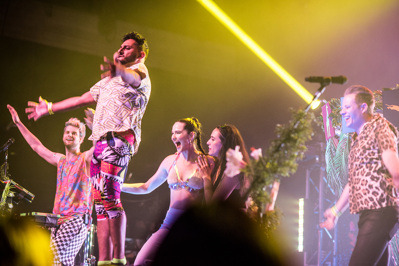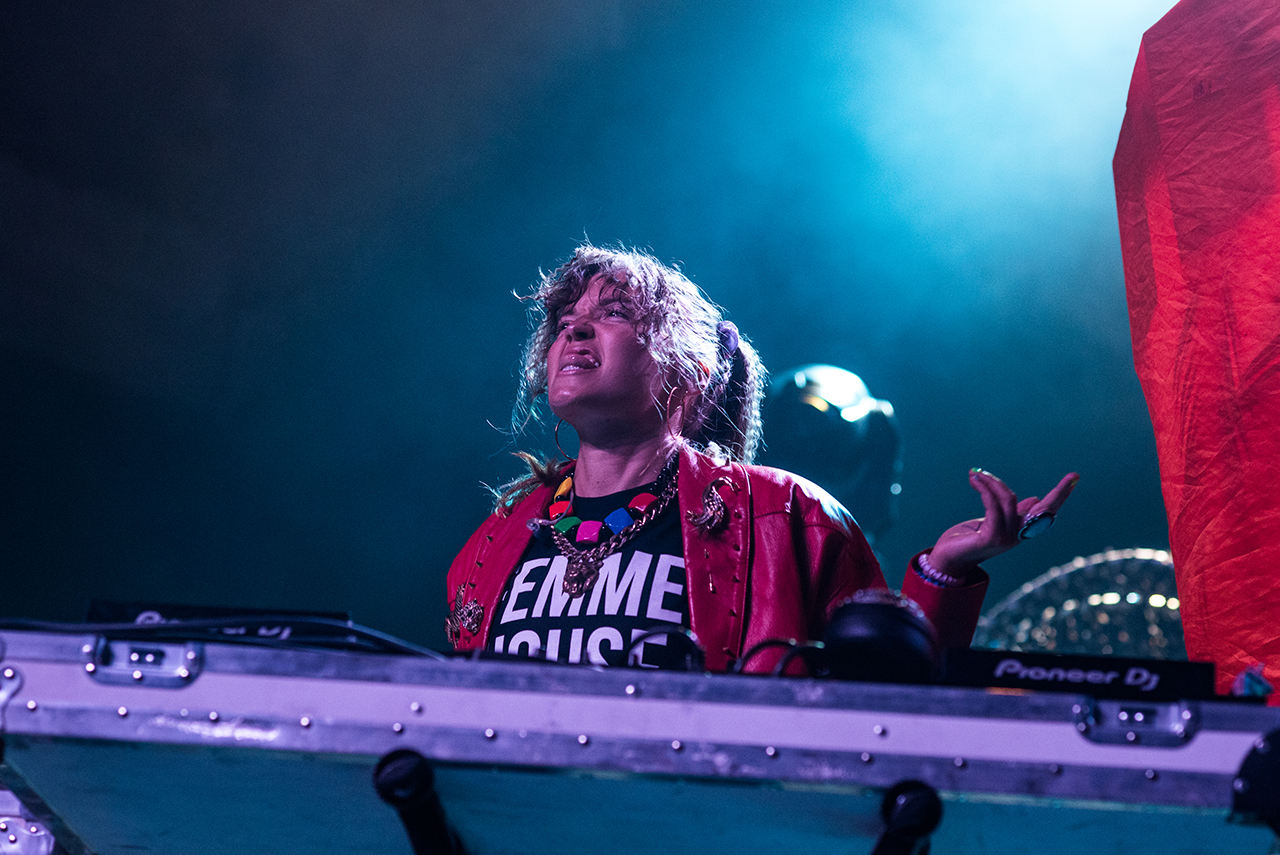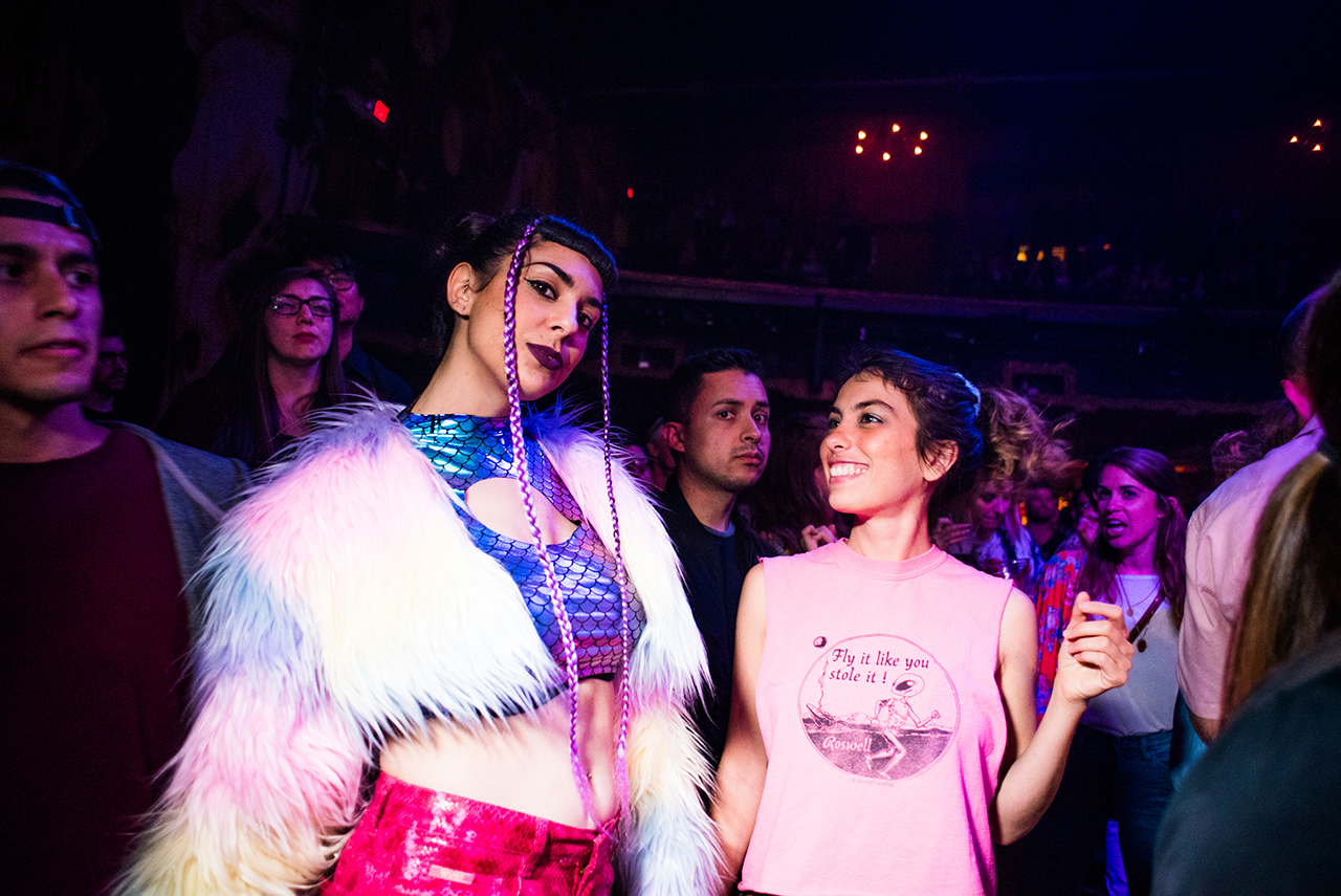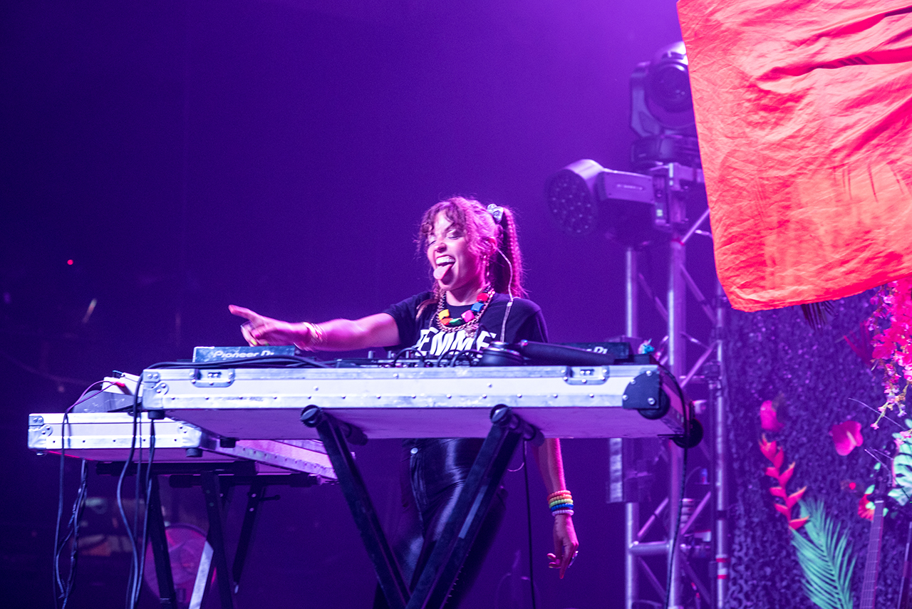LP Giobbi kicked off the night with a DJ set before she was joined by Grammy-nominated singer Kah-Lo, and then by Hermixalot and Computo to perform their new single “Amber Rose” (which is a take-down of slut-shamers). Sofi Tukker came on, playful and joking, playing their foliage-covered drum pad in the middle of the stage. For one of their songs, they brought some of the crowd on stage to do their choreography, but the people they chose quickly abandoned the routines to do their own thing. Sofi went out and crowd-surfed at that point.