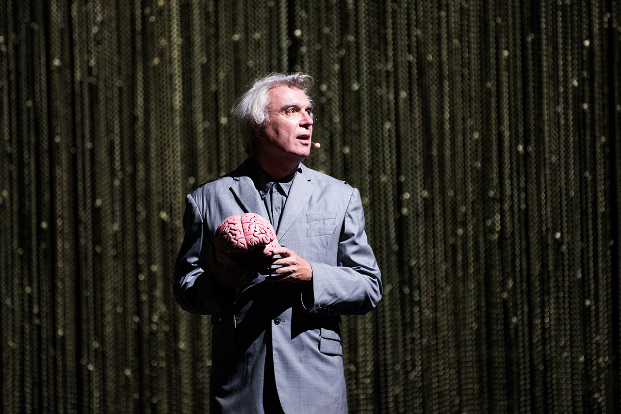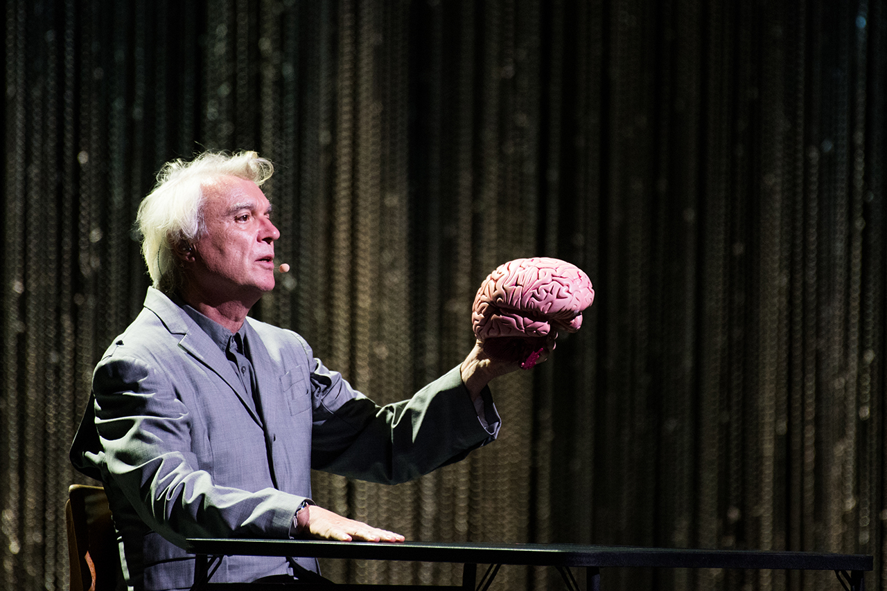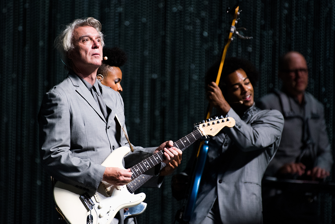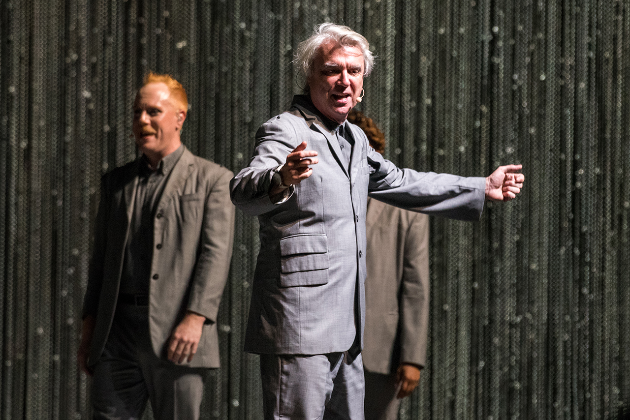 Barefoot and clad in grey suits, David Byrne and his band provided a beautifully minimalist stage performance on Saturday night at Shrine Auditorium. A manifestation of his latest record, “American Utopia,” the show opened with Byrne in darkness at a desk holding a brain, as silver curtains rise around the bare stage, launching into the song, “Here.” The set included songs from the record, other solo material, and a nice chunk of Talking Heads favorites, all performed by a wireless 11-piece band marching in whimsical choreography by Annie-B Parson that utilized every corner, even with arms occasionally jutting out from behind the curtains holding instruments. They capped the night with two encores, including a percussive, call-and-response interpretation of Janelle Monae’s “Hell You Talmbout” and “Dancing Together,” from a musical Byrne wrote with Fatboy Slim called “Here Lies Love” about Imelda Marcos, aimed at politicians behaving as if unaware of their relationship to constituents. The very talented duo Ibeyi opened, but the chatty audience did not quite give them the attention they are worth. By the end of their set, the duo got the crowd engaged, singing along with their strong messages about gender and racial equality.