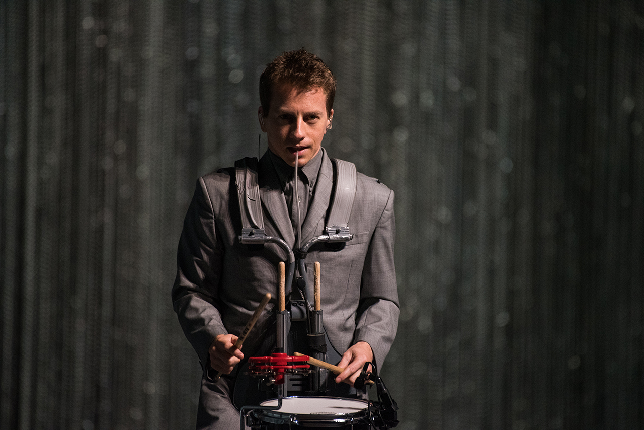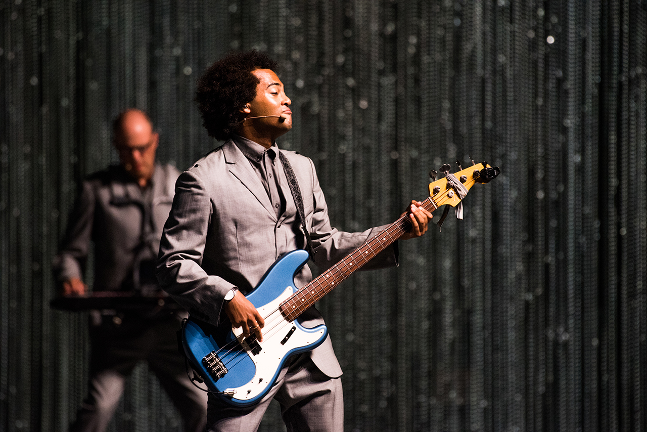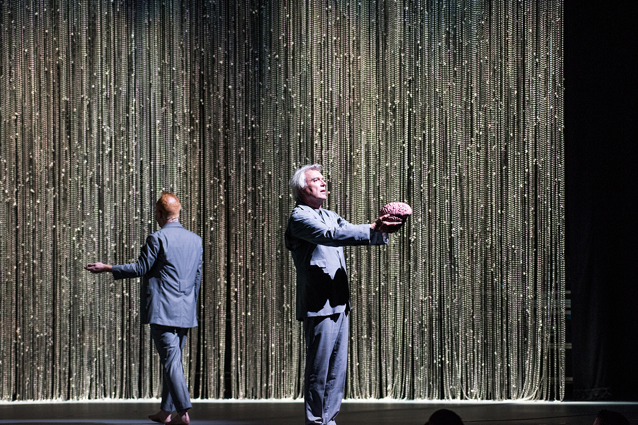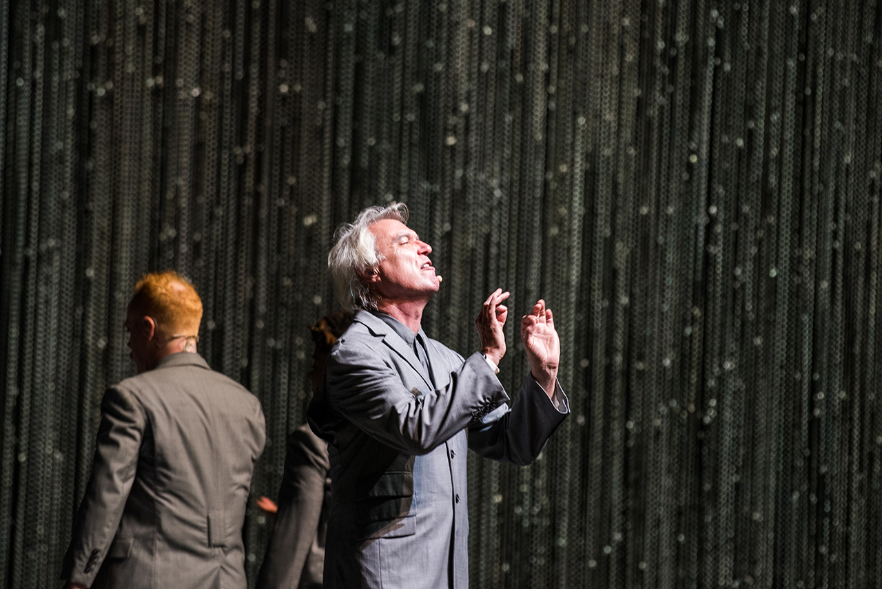 Barefoot and clad in grey suits, David Byrne and his band provided a beautifully minimalist stage performance on Saturday night at Shrine Auditorium. A manifestation of his latest record, “American Utopia,” the show opened with Byrne in darkness at a desk holding a brain, as silver curtains rise around the bare stage, launching into the song, “Here.” The set included songs from the record, other solo material, and a nice chunk of Talking Heads favorites, all performed by a wireless 11-piece band marching in whimsical choreography by Annie-B Parson that utilized every corner, even with arms occasionally jutting out from behind the curtains holding instruments. They capped the night with two encores, including a percussive, call-and-response interpretation of Janelle Monae’s “Hell You Talmbout” and “Dancing Together,” from a musical Byrne wrote with Fatboy Slim called “Here Lies Love” about Imelda Marcos, aimed at politicians behaving as if unaware of their relationship to constituents. The very talented duo Ibeyi opened, but the chatty audience did not quite give them the attention they are worth. By the end of their set, the duo got the crowd engaged, singing along with their strong messages about gender and racial equality.