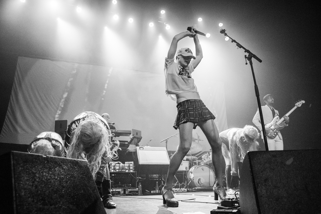 In support of their latest album “White Is Relic/Irrealis Mood,” of Montreal swept through the Fonda Theater on Thursday night as part of their ongoing fall tour of North America. The relatively small crowd was brought to life when Kevin Barnes and his band came on stage and provided their style of psychedelic indie-pop. Throughout the night, the music was backed by colorful theatrics, multiple costume changes and synchronized dancing between Barnes and a few costumed back-up dancers. Whether he was reaching out to grab the hand of an adoring fan or striking a pose to punctuate the end of a song, Barnes was in full effect, and the crowd loved it.